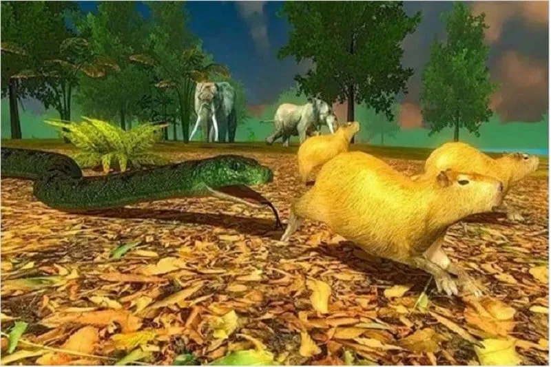 1. 丰富多样的生态环境:游戏拥有高度还原的3D开放世界,涵盖幻想风格的城市街区、静谧的乡村小镇与危机四伏的热带雨林等。每一处场景都充满探索张力与生存变量,让玩家能在不同环境中体验蛇的生存之旅。