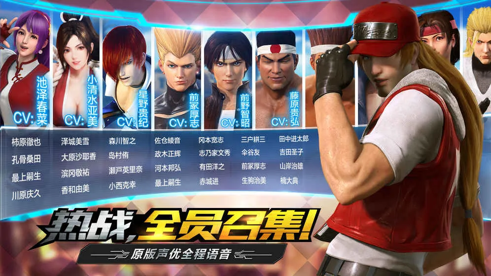 角色超丰富,声优超豪华:召集史上最全格斗家,拳皇历代角色悉数登场,如草薙京、八神庵等。重启原版声优,经典角色原声重现,带来视觉与听觉的双重盛宴。