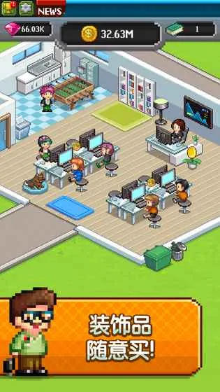 3、多样的场景与装饰:提供多种办公环境选择,从普通办公室升级到豪华城堡,也能购买大量装饰品来个性化商业帝国。